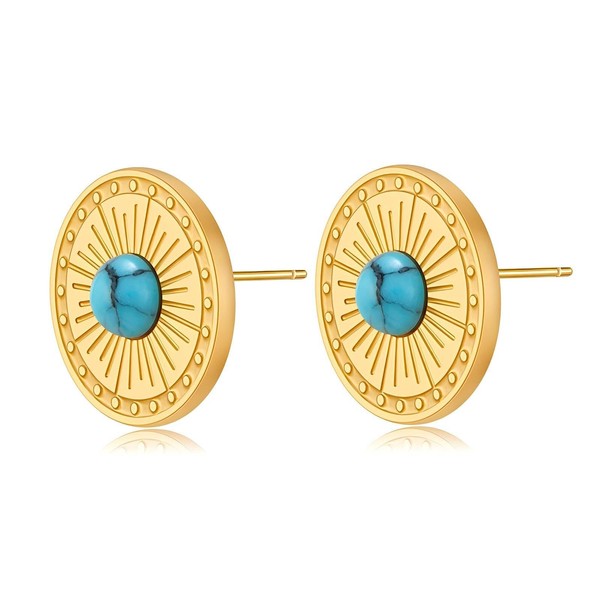 ALRNBY Turquoise Stud Earrings for Women Dainty 18K Gold Plated Earrings Western Jewelry Trendy Gift Flower Leaf Boho Earrings Dangle (Round)