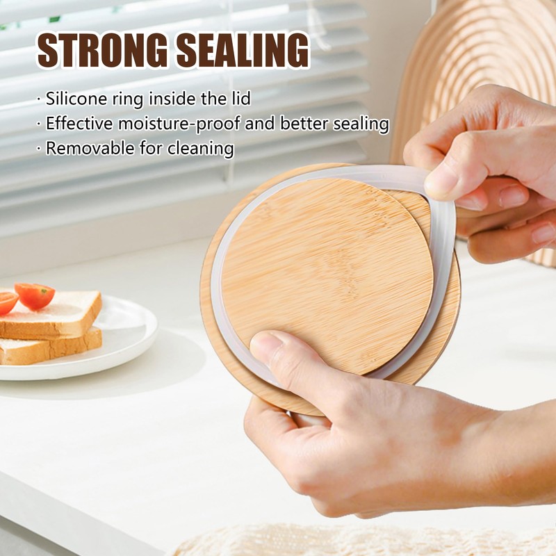 - 【Jar with Lid Using Tip】 When covered with the lid, then use the way of pressing turn the lid that could make kitchen canisters for countertop more tightly sealed through the silicone ring