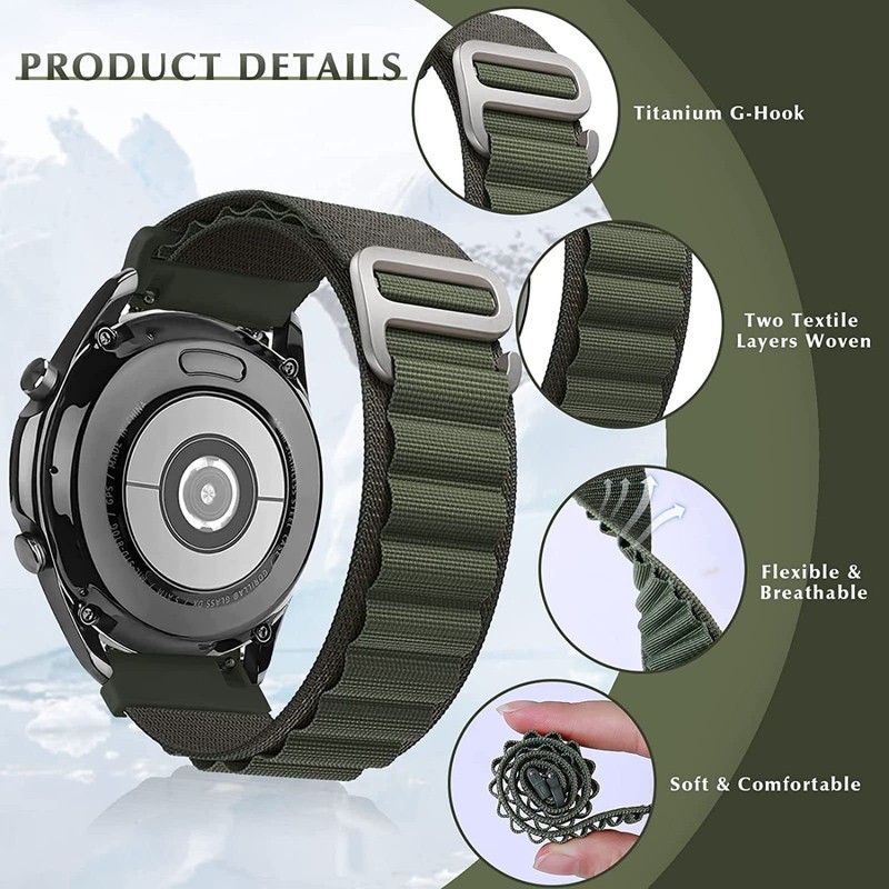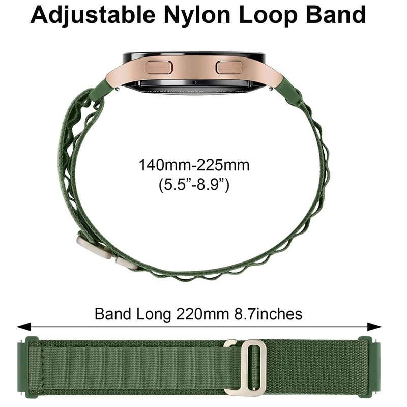 - 20mm Watch Bands: The Nylon Bands Compatible with Samsung Galaxy Watch 7&FE 40mm 44mm / Samsung Galaxy Watch 6&4&5 40mm 44mm/ Galaxy Watch 5 Pro 45mm/ Galaxy Watch 6&4 Classic 42mm 46mm 47mm 43mm/ Active 2&1 Bands.and others smartwatch using 20mm lug width