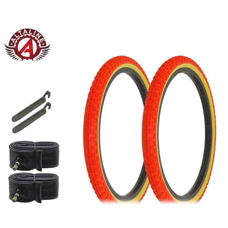 AltaLine 2 ALTALINE BICYCLE 20 X 1.75 COMP III TIRES W/TUBES & LEVERS MULTIPLE COLORS. - Red/Gum