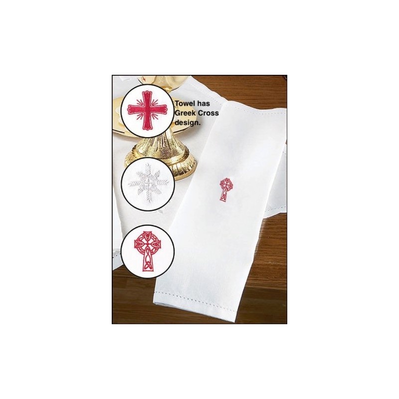 Altar Lavabo Towel-Greek Cross Design-60% Cotton/40% Linen (Pack Of 3)