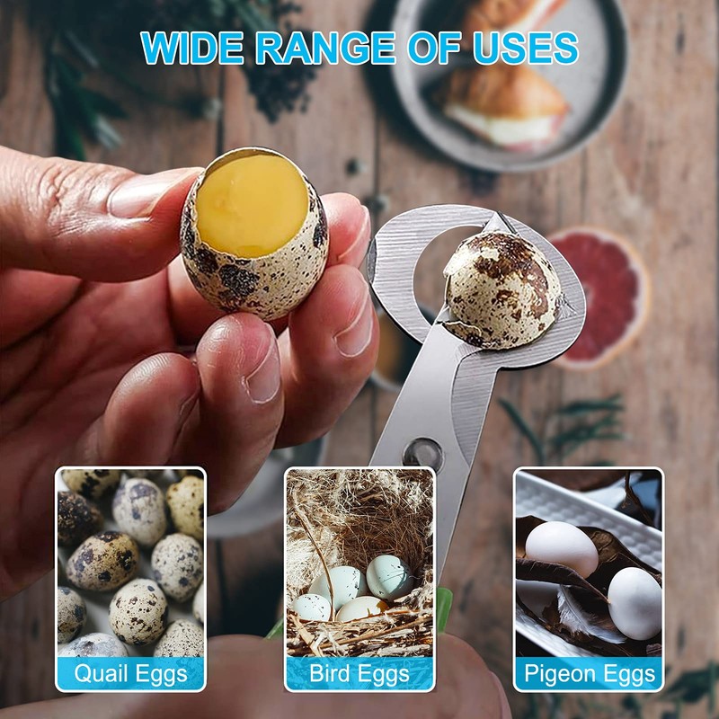 - Wide application: The quail egg scissors can be used for all types of small eggs, e.g. quail eggs, bird eggs, pigeon eggs, etc. It is a practical and energy-saving helper for kitchens, outdoor picnics and gatherings of friends, etc.