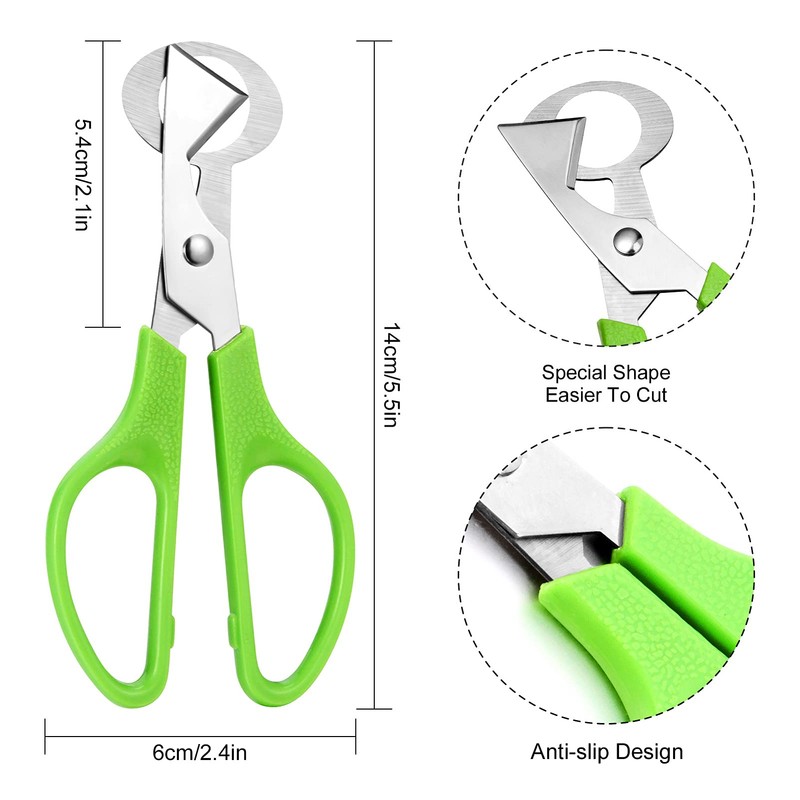- Features: The quail egg scissors are easy to use and hygienic. The hole or circle of the quail egg scissors has the inner edge, which is smooth and not sharp, and the egg shell can be cut cleanly and tidily. Safe and saves time, leaves no shell pieces.