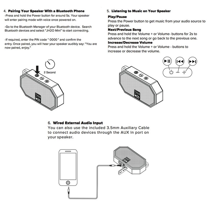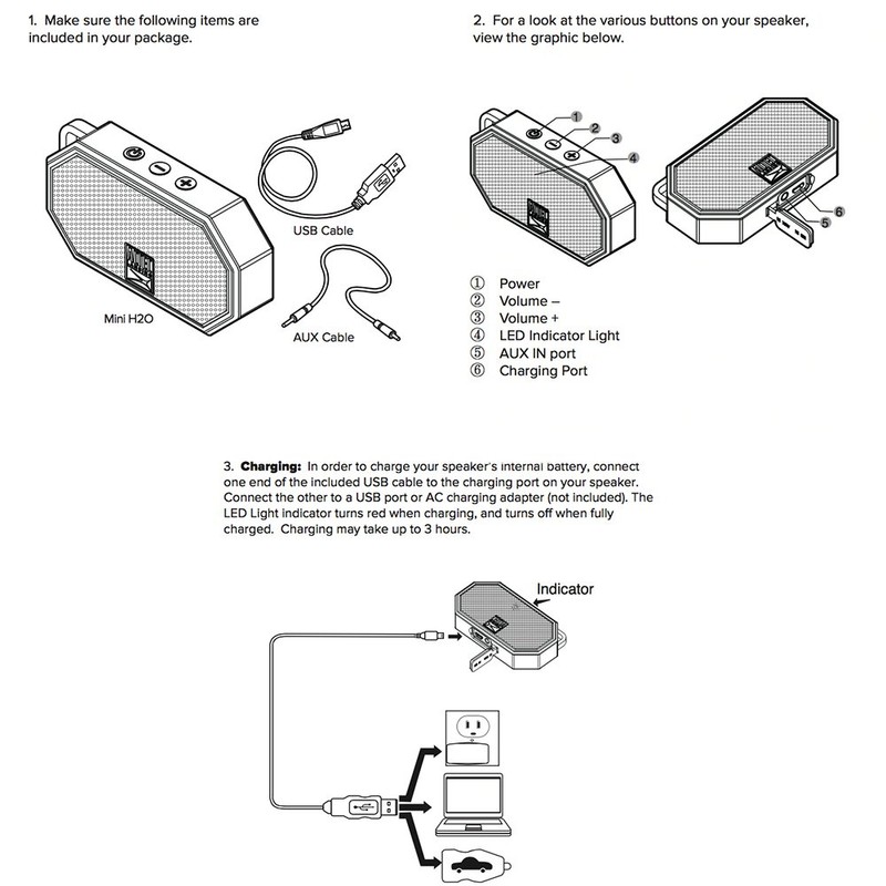 - 6 HOURS OF PLAYTIME: These portable bluetooth speakers are USB rechargeable (cable included) and provide up to 6 hours of use on a full charge. The waterproof speaker maintains a stable connection for up to 30 feet for indoor and outdoor entertainment.