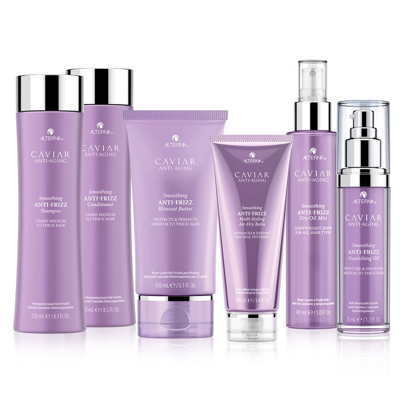 Alterna's CAVIAR Anti-Aging Smoothing Anti-Frizz Air-Dry Balm styler embraces natural texture, adding natural-looking shine to hair, reducing air-drying time, creating frizz-controlled definition and hold, and fighting frizz. Inspired by the Science of Skincare for Hair, Caviar Anti-Aging is the first comprehensive line of hair care products that address intrinsic (natural aging process), chemical, and environmental aging by infusing hair with the finest, most effective ingredients to restore hydration, strength, vibrancy, and elasticity for more youthful-looking hair. Every product contains pure caviar from the roe of non-endangered sturgeon fish, sustainably farmed in France. Naturally luxurious and rich in vitamins, minerals, and omega fatty acids that help restore hair's lipid layer to its optimal state—the key to healthier, younger-looking hair.
