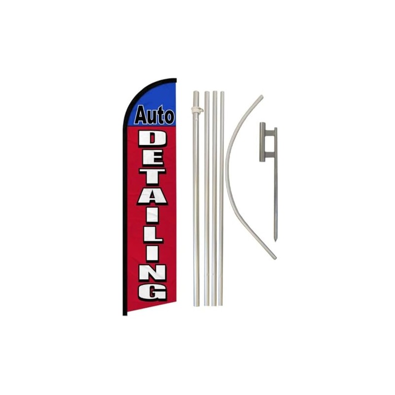 Alternative Novelties Auto Detailing Red & Blue 2.5'x11.5' Super Knit Polyester Advertising Windless Flag With Pole Kit