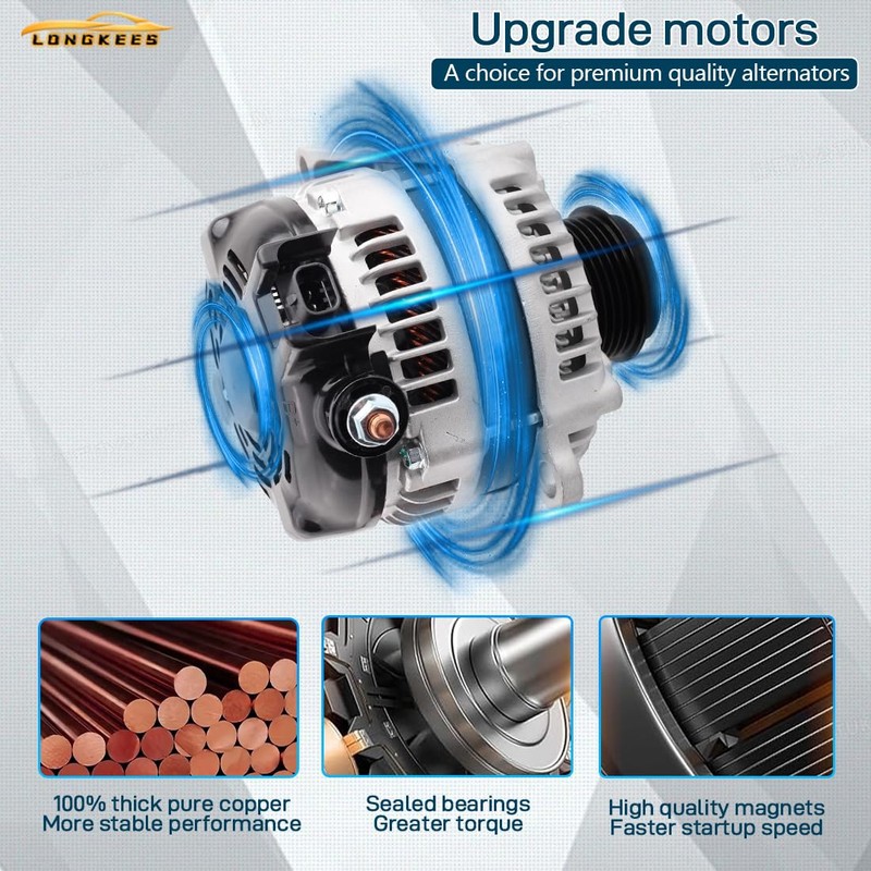 - 【Alternator Specifications】 Output: 70 Amps | Voltage: 12V | Rotation: Clockwise | Pulley: 6-Groove | Fan: Internal | Regulator: Internal | Designed for daily driving and standard electrical loads.