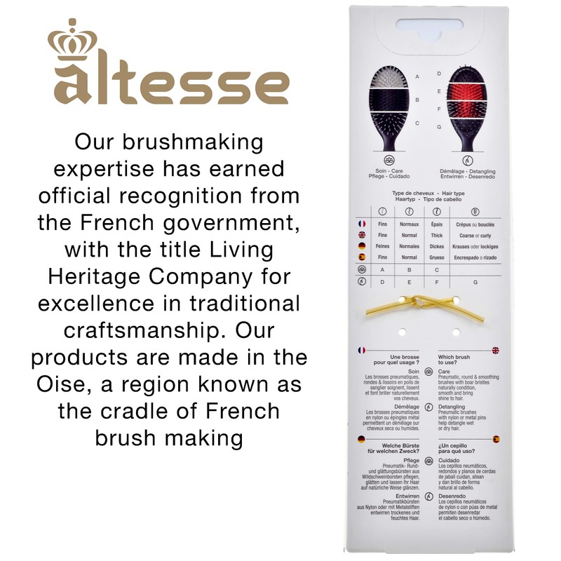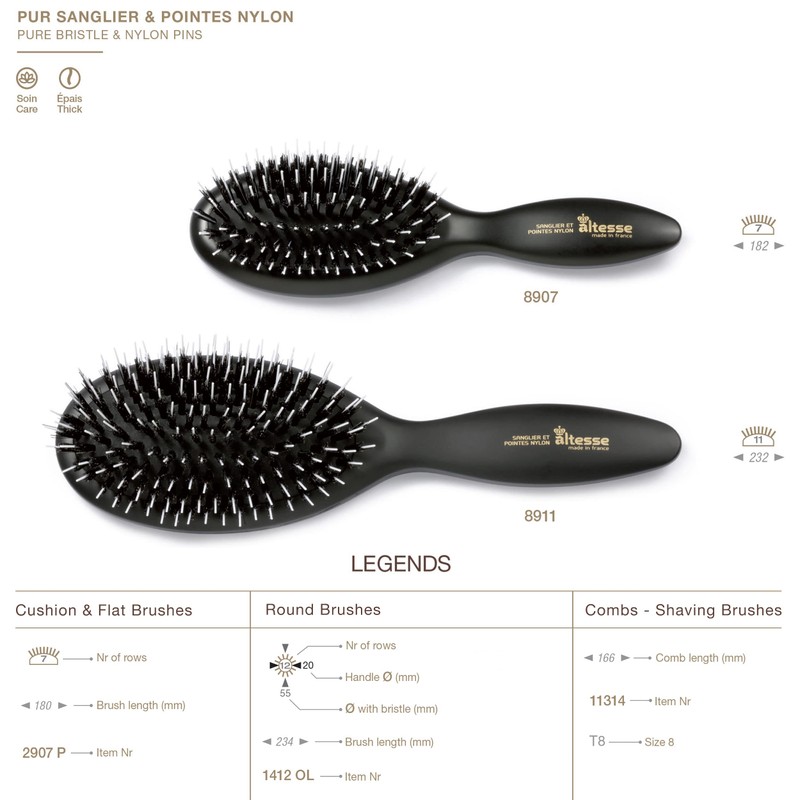 Altesse 1 x Boar Bristle Hair Brush with White Nylon Pins 7 Rows
