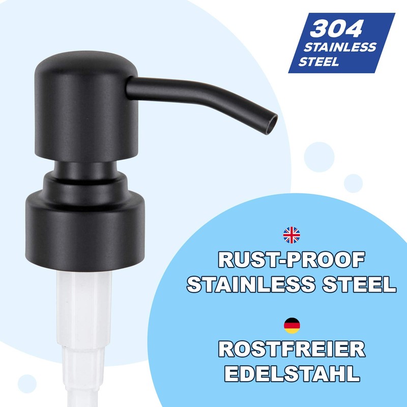 - Made of rustproof 304 stainless steel: Our pump heads are covered with a high-quality 304 stainless steel coating, which prevents corrosion and does not rust. With numerous finishes and alloys, you can choose the style that matches your selected bottle. Our pumps have a high-quality look and a pleasant feel.