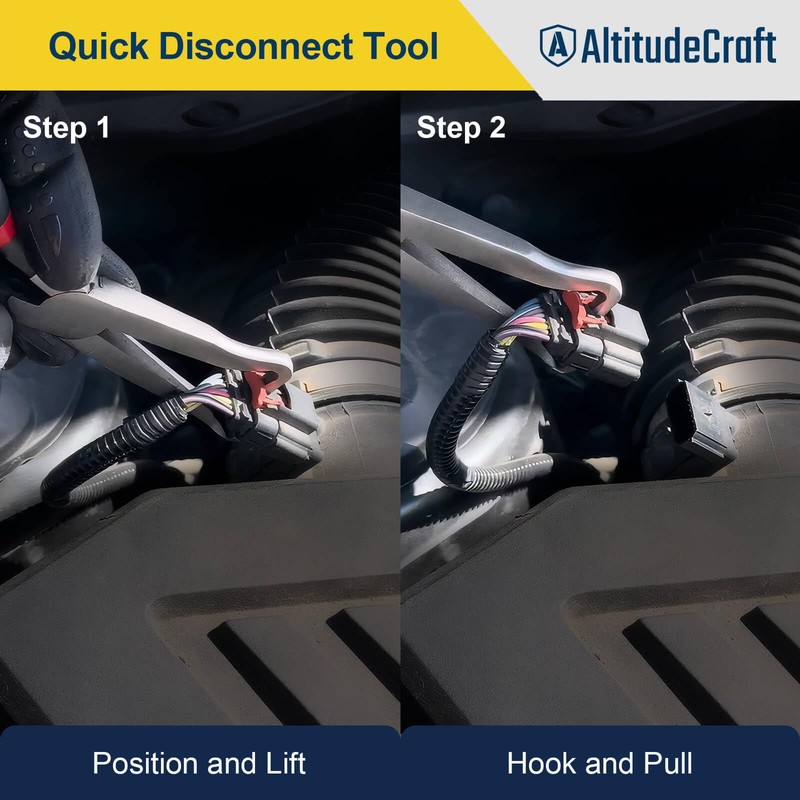 The complete solution for safe, fast, and frustration-free electrical connector removal—AltitudeCraft’s 2-piece disconnect pliers set gets the job done from any angle.