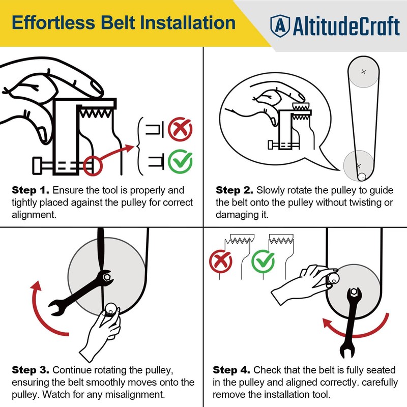 - Protects Your Belt from Misalignment - The AltitudeCraft stretch belt tool guarantees perfect alignment during installation, safeguarding your belts and extending their lifespan by preventing wear and tear.