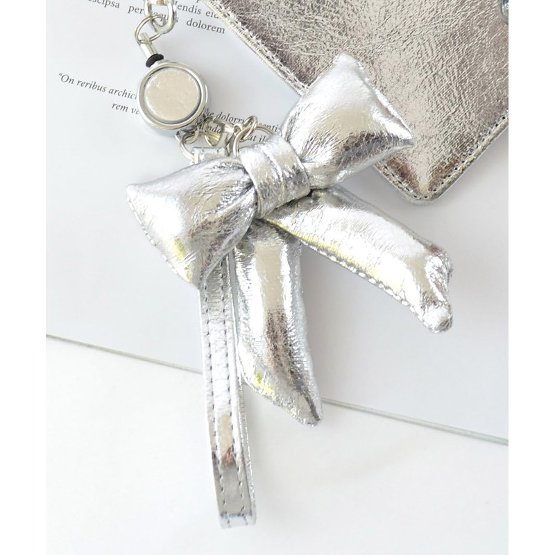 Alto Rose Pass Case, Commuter Passcase, Commuter Charm, Metallic Reel, With Reel, IC Card Case, Card Holder, Ribbon, Elezon, Cute, Silver, Synthetic Leather, Silver