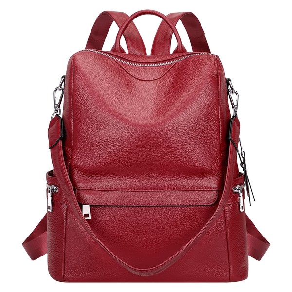 ALTOSY Leather Backpack for Women Elegant Genuine Backpack Purse Ladies Leather Shoulderbag(S80 Red Wine)
