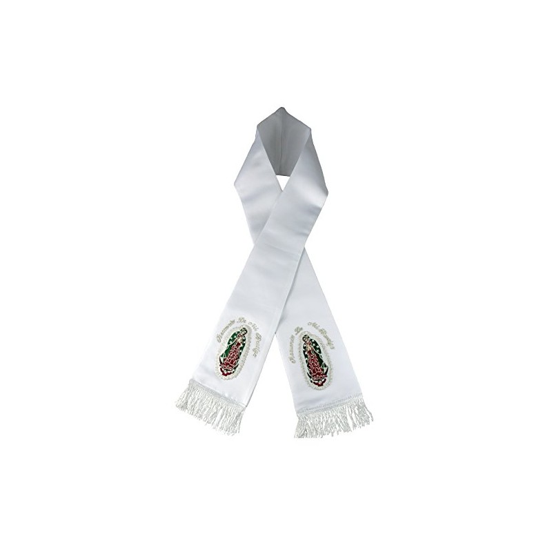 Altotux Satin Embroidered Christening Baptism Stole Scarf Sash Lady of Guadalupe (5-7, With Words)
