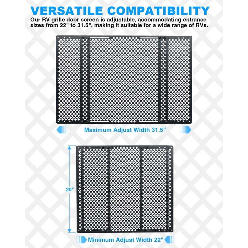 • Customizable Fit for Every RV - Tailor the fit of your screen protector to your RV's door size. With an adjustable width spanning from 22" to 31.5", it accommodates various RV door sizes, guaranteeing a flawless fit on every occasion.