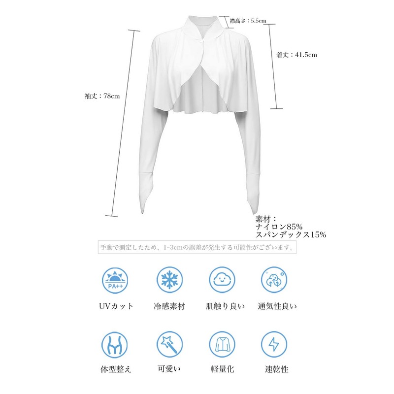 ALUBES Arm Cover, UV Protection, Rash Guard, Bolero Cardigan, Women's, Stole, Cool Touch Feeling, Arm Cover, Sun Protection, UV Protection, Outdoor Activities, Leisure, Commuting, Driving, Bicycle,