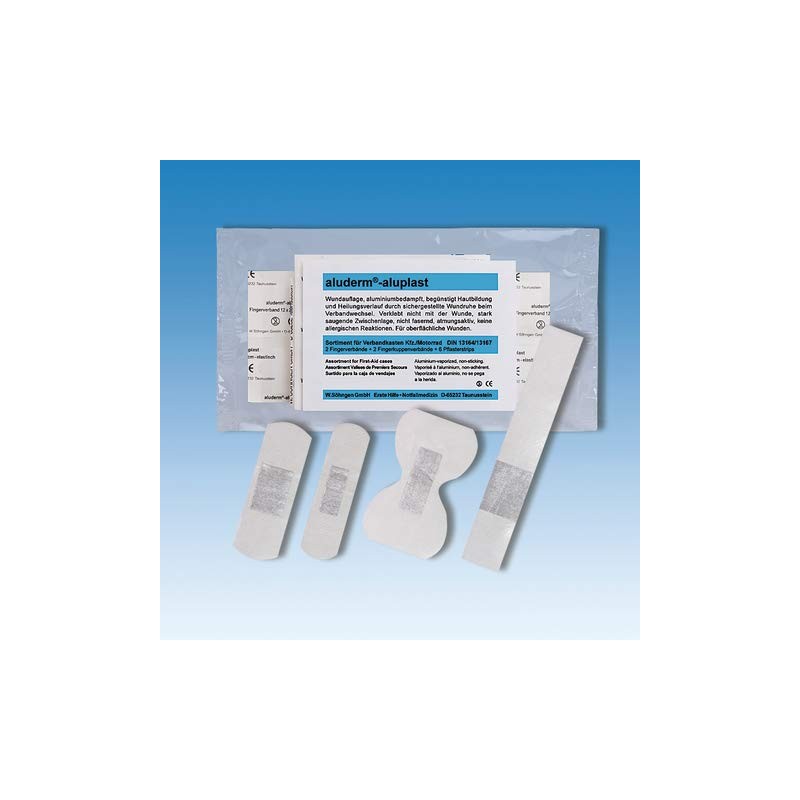 - Plaster set aluderm-aluplast, contents: DIN 13164/13167, assorted. Size Contents: 1 set