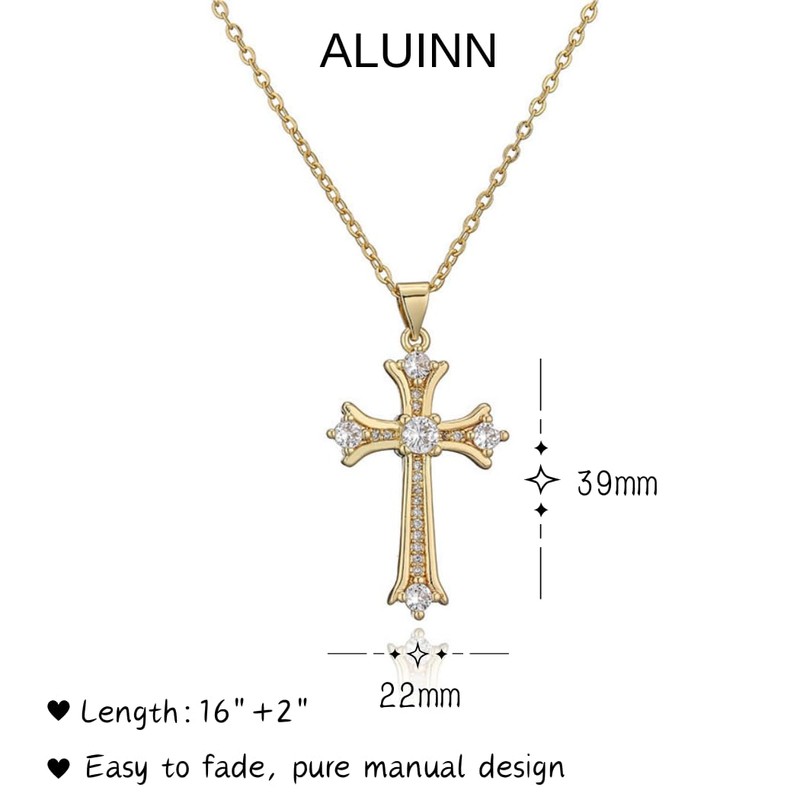 Aluinn Cross Necklace for Women-Dainty Simple Gold Plated Cross Pendant Cute Diamond Necklaces for Women Gold Jewelry