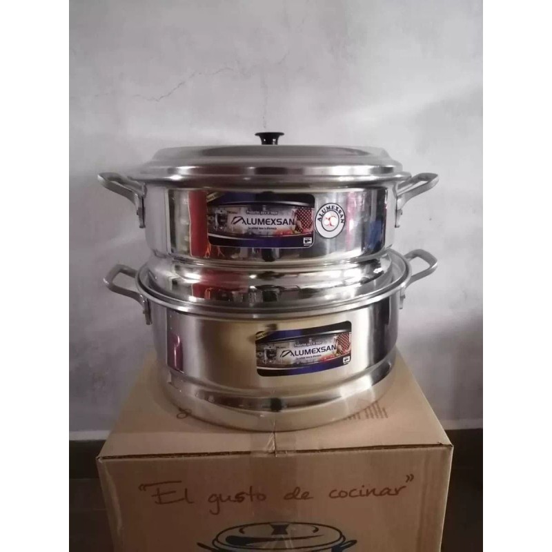 1 arrocera budinera de 26 cm de diametro con capacidad de 3.6 litros. Para 700gramos de arroz