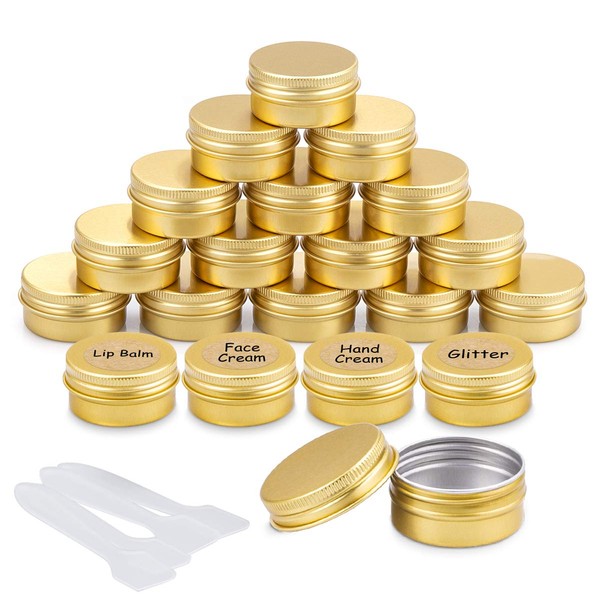 Aluminium Empty Containers, Round Travel Cream Containers For Creams, Lotions, Masks, Cosmetics, Nail Art, 20 ml, Pack of 20 Gold