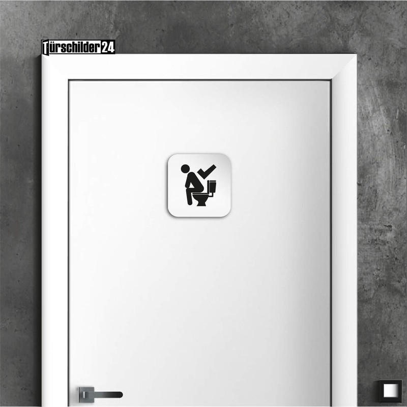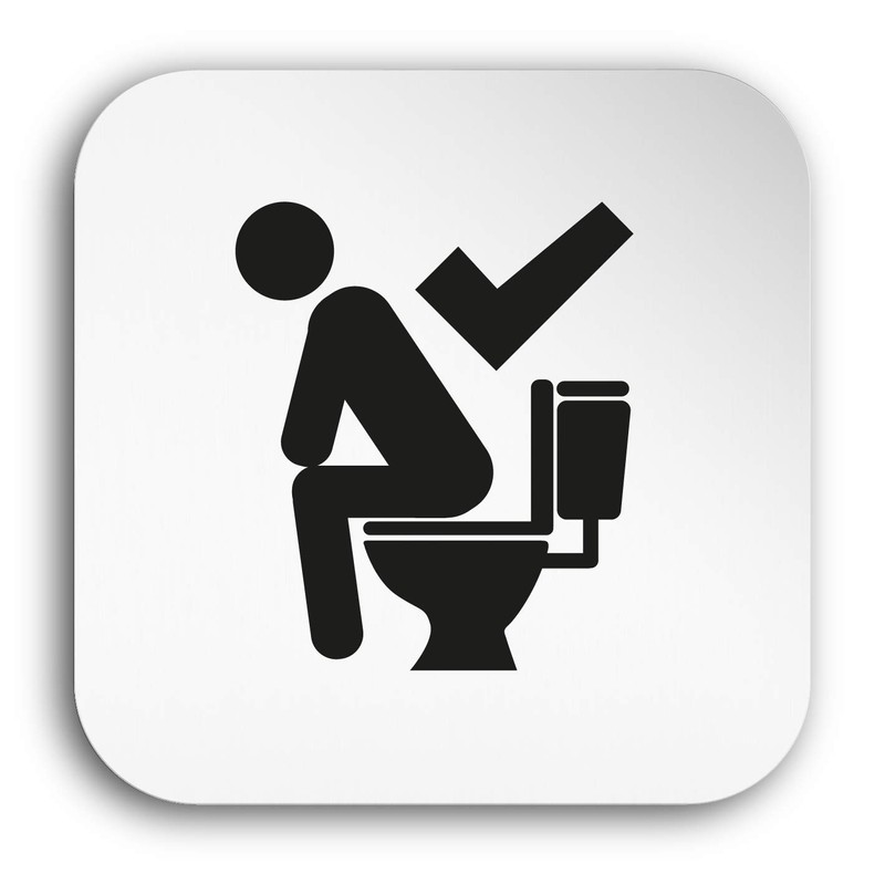 Aluminium toilet door signs of extra class. • "Pissing Toilet in Sitting • Size 150 x 150 mm including invisible 5 mm spacer • 1.5 mm thick aluminium with refined surface