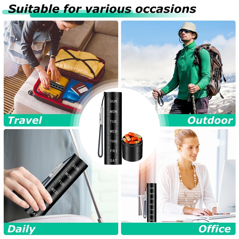 - 【 Laser Engraving Technology】Instead of regular printing craft,our vitamin organizer uses Upgrade Laser Engraving Technology ,which is durable and hard enough to promise never weared off.The days are etched into the metal firmly and make letters on it clearly visible.You can use our pill container permanently.
