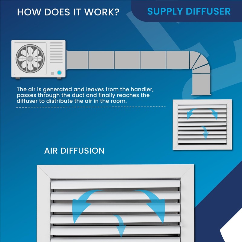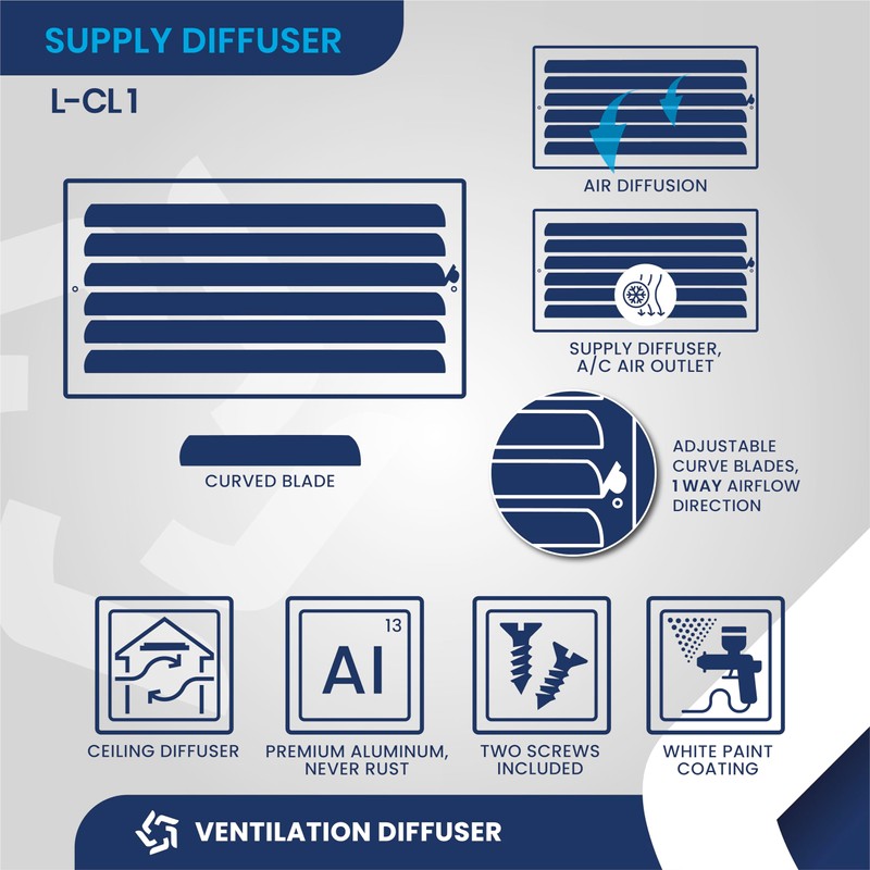 - [Aluminum Construction]: Made from rust-free high-grade ALUMINUM AA6063. Extruded aluminum ensures the diffuser is sturdy, light, and easy to install. Perfect as an air conditioner vent or hvac vent.
