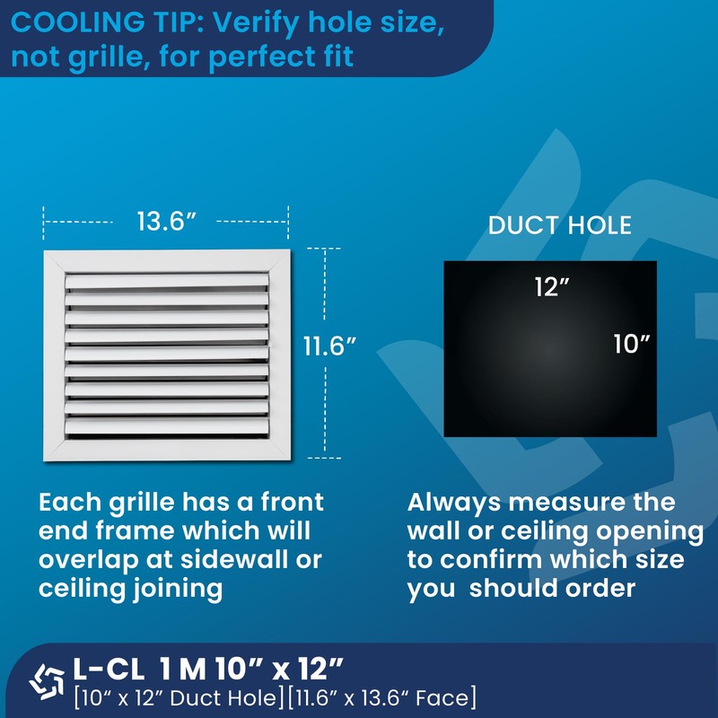 - [Sizing Guide]: Ensure accurate fit by measuring your wall or ceiling opening before ordering. For this grille, the opening should be at least 10"W x 12"H. Avoid using old grille measurements. Always start with the Width (W) followed by the Height (H). This grille comes with a front end frame designed to overlap at wall or ceiling junctions, with an overall external dimension of 11.6"W x 13.6"H.