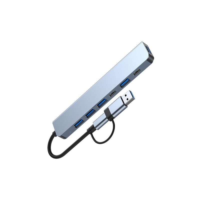 Aluminum 7 in 1 USB C Hub with USB 3.0, USB 2.0 Ports for MacBook Pro Air and More Devices