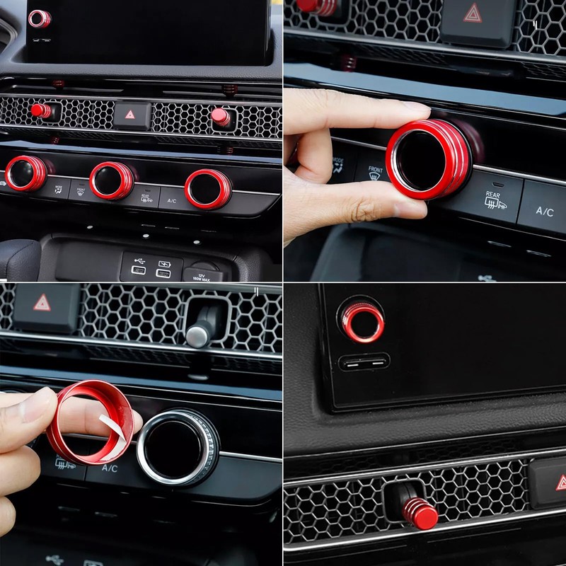 Aluminum Air Conditioning Control Knob Covers Compatible with Honda Civic 2025-2022, CR-V 2025-2023, Acura Integra 2025-2023 Accessories 10pcs Red