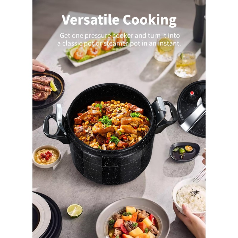 - [Large Capacity Compound Bottom] : Offers even pressure distribution for quicker and more efficient cooking, saving time.