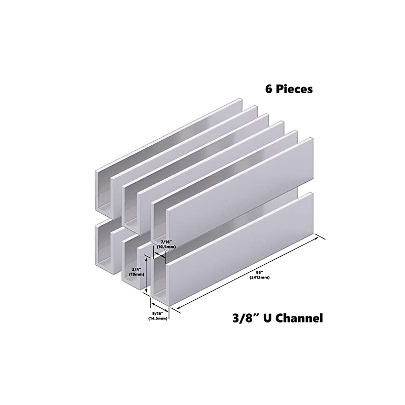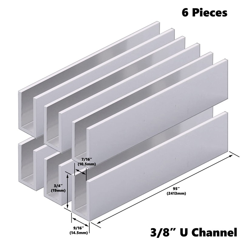Aluminum Fixed Panel Shower Door U Channel for 3/8" Thick Glass 95 in Length (6, Brush Finish)