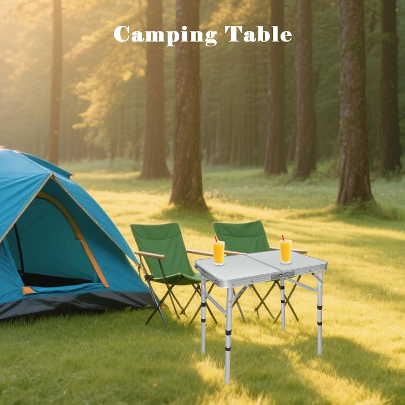 Aluminum Folding Table - Premium Portable, Lightweight, and Adjustable Camping Table for Outdoor Adventures, Picnics, and Home Use - Durable and Compact Design 2ft with Carry Handle (White)