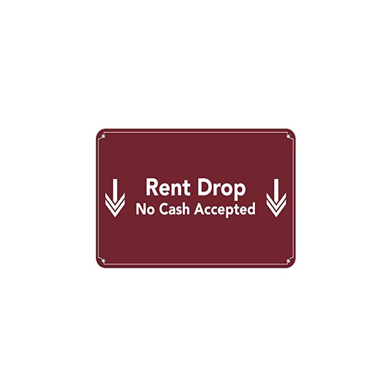 Aluminum Horizontal Metal Sign Multiple Sizes Rent Drop No Cash Accepted D Feature Department Red Business with Border Weatherproof Street Signage 10x7Inches