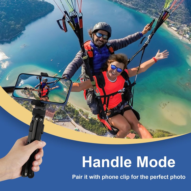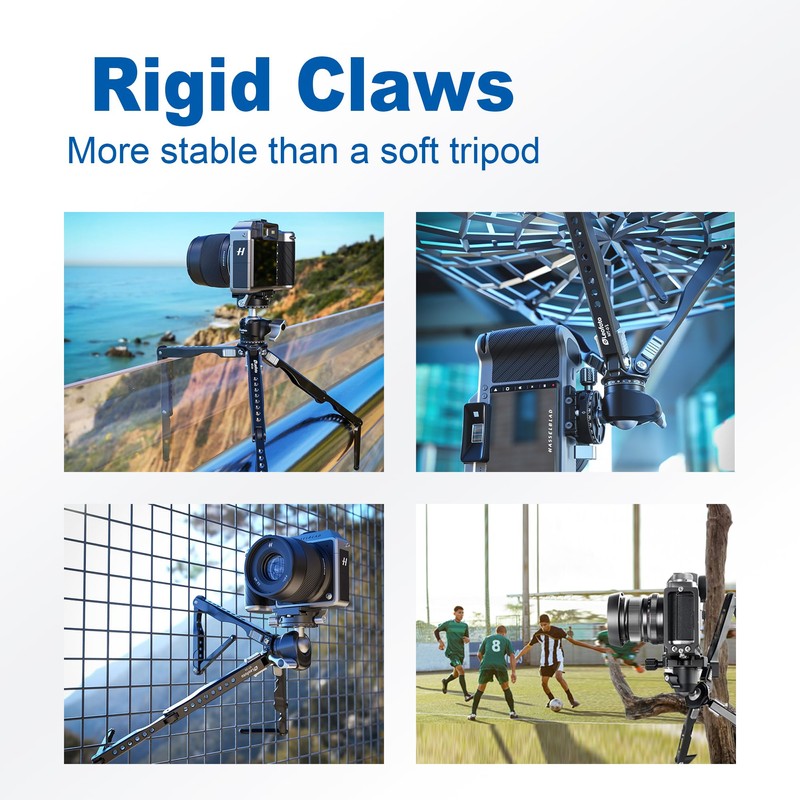 Various Shapes and Forms: When the embedded legs are opened, it presents a spider-like form, which can be detached from the ground to grab objects such as iron nets, fences, etc., When the venue does not have a flat surface that is easy to place the tripod on, you can clip it to a supportable corner and take selfies or broadcast live at any time.