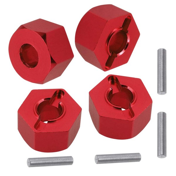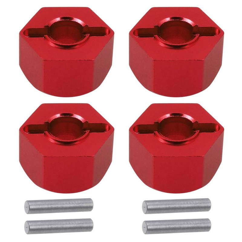 Aluminum RC Front & Rear Wheel Hubs Hex 12mm Upgrade 1654 for 1/10 4X4 Slash Hoss Stampede Rustler 4WD (Red)