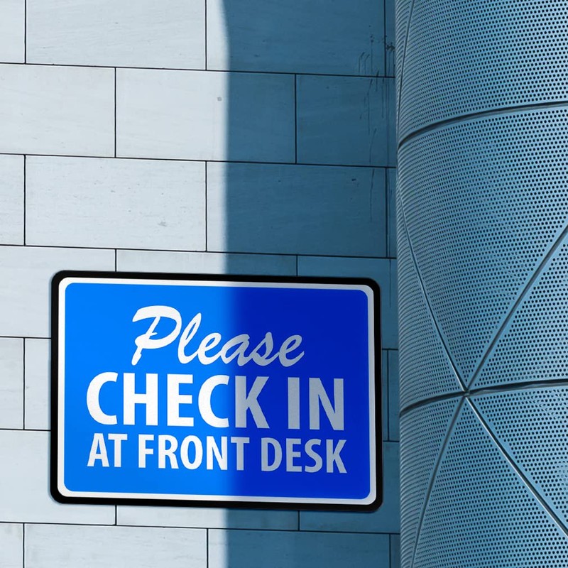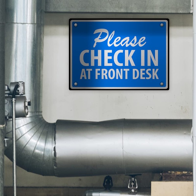 Aluminum Weatherproof Metal Sign Multiple Sizes Please Check in at Front Desk Horizontal Street 10x7Inches