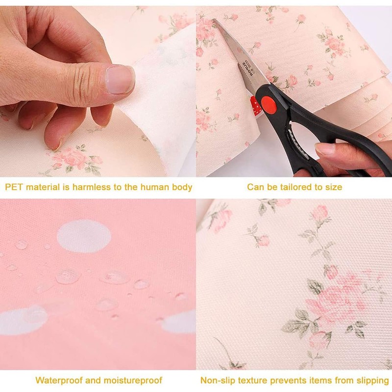 - 【MULTIFUNCTIONAL】 The shelf liners can not only be used as a kitchen liner to ensure the clean of the home, but also as a refrigerator mat to keep food and fruits fresh. Various Usage: Cabinet mat, drawer mat, desk mat, table mat, shelf liner, countertop.