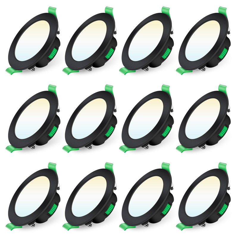 ALUSSO ALUSSO LED Einbaustrahler 230V Schwarz Dimmbar Flach 7W IP44 LED Spots 68mm Warmwei? Neutralwei? Kaltwei? Einbauspots fr Badezimmer Kche Wohnzimmer, 12er Set