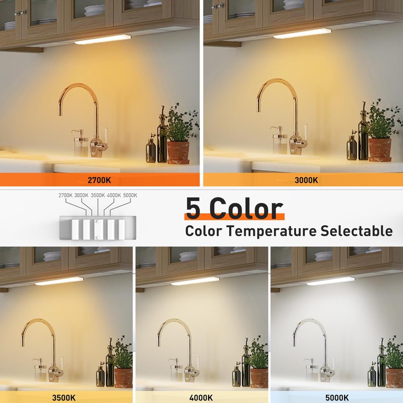 • 【5CCT Color Selectable】Our kitchen lights under cabinet have 5 color temperature-2700K/3000K/3500K/4000K/5000K. Simply slide the button of the fixture to set different light colours for different environments. It's successfully eliminates the hassle of returning or exchange products due to inappropriate color temperature.