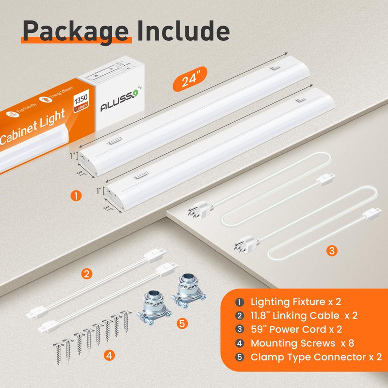 - 【Hardwired Option】ALUSSO LIGHTING under counter lights for kitchen are designed 2 types of connections to suit your installation needs. The 59'' power cord and plug are easy to install and remove without having to change your home's existing wiring and power arrangement. As for hardwiring, it allows for a more discreet installation and seamless integration. Use plugs or direct wiring, it's up to you!