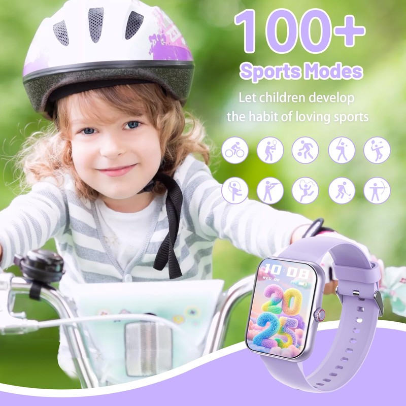 Alutoria Smartwatch Children, Children's Phone Watch, Sports Fitness for Children, 1.83 Inch HD Touch Screen, Notifications Messages, Fitness Tracker for Boys, Girls and Teenagers, Shiny Purple