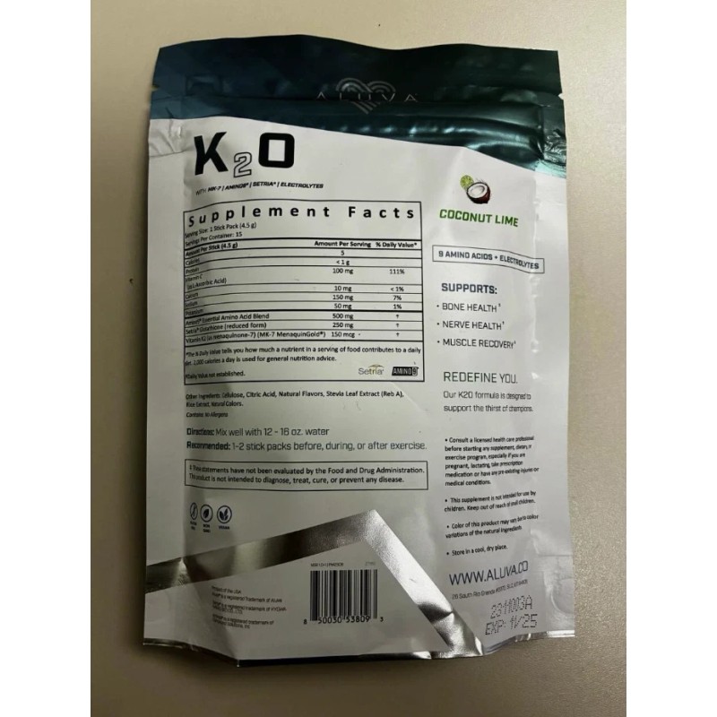 Aluva K2O Electrolytes 15 count Coconut Lime EXP 11/25 NEW and Sealed