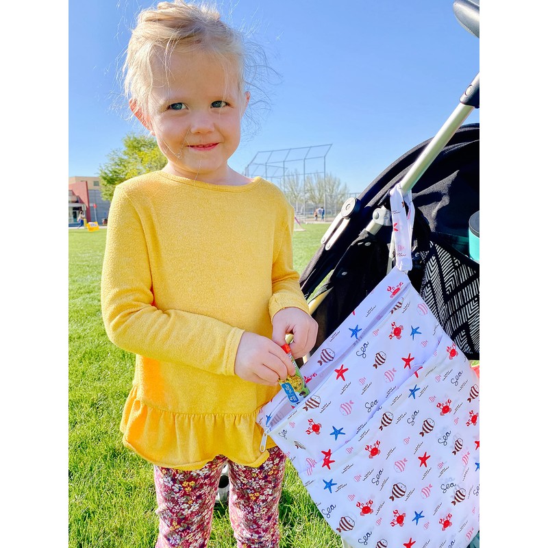 - Moda y elegante, reutilizable y resistente al agua, de alta calidad, ribete y diseño atractivo. La bolsa húmeda/seca de ALVABABY está hecha de 100% poliéster impermeable, pon los pañales sucios en una bolsa húmeda. Viene con asa para un fácil transporte o fijación a tu bolsa de pañales o cochecito.