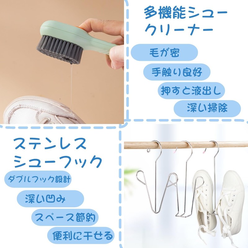 • 【Anti-Yellowing 】 Comes with 2 drying racks for efficient drying of shoes and 4 dustproof storage bags to protect shoes from UV rays. Drying rack keeps shoes dry evenly after washing and holds their shape. In addition, the dustproof storage bag protects your shoes from UV rays and prevents yellowing, so you can keep them looking beautiful for a long time