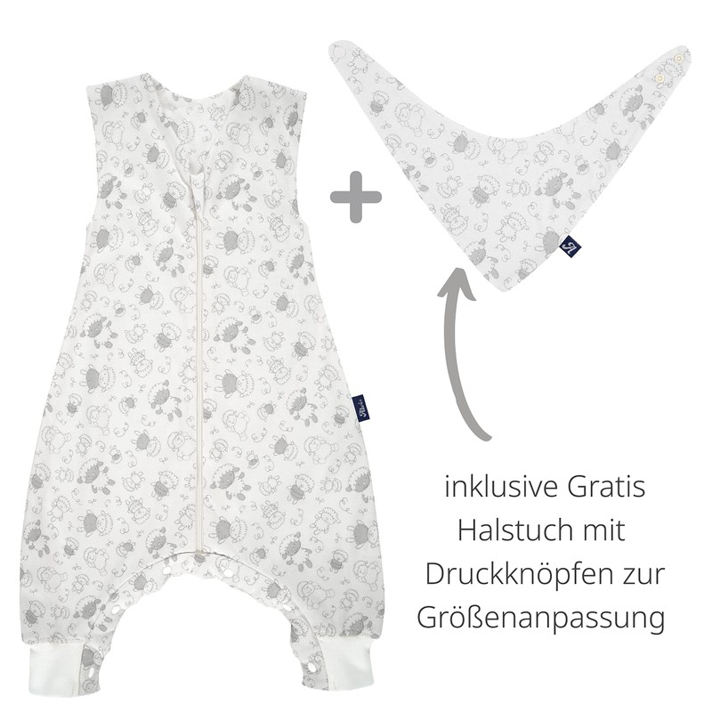 Alvi Summer Sleeping Bag with Feet / Sleep Overall Light / Jumper + Free Neckerchief - Beige Sheep - Size 100 cm