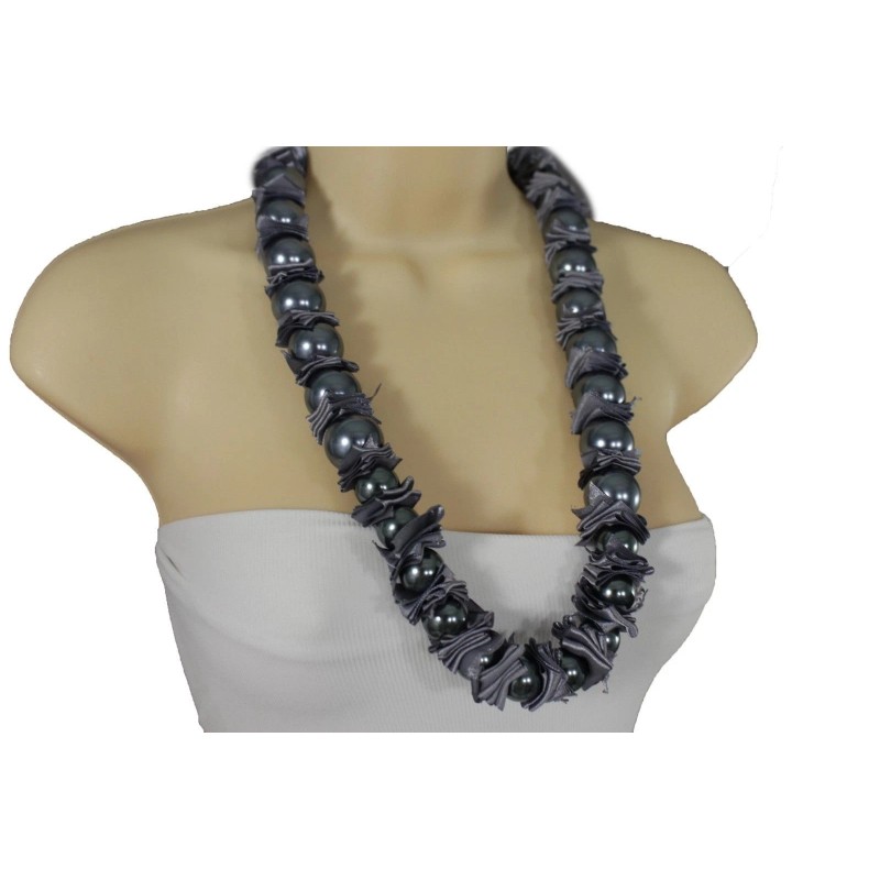 Alwasytyle4you Women Grey Big Imitation Pearl Beads Long Fashion Tie Fabric Necklace Pendant