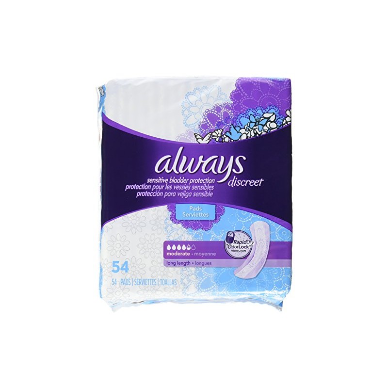 Always Discreet, Pads Long Length Moderate Absorbency 54 Count Cs Of 2