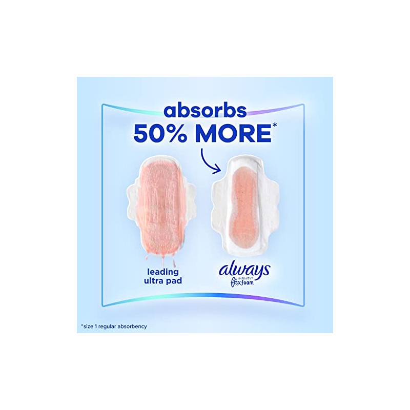 - Even on heavy days, FlexFoam pads absorb 50% more than the leading ultra thin pad