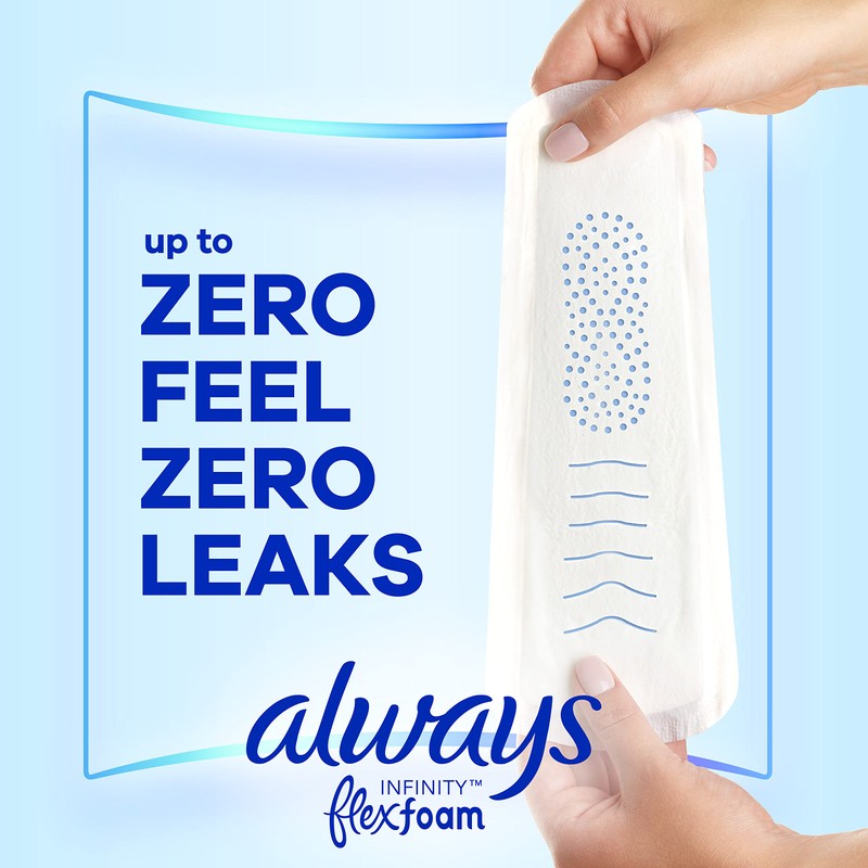 - Zero Leaks and Zero Feel is possible with Always Infinity FlexFoam Heavy Flow Absorbency period pads